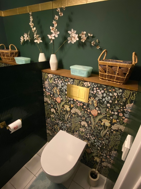 Stilvoll gestaltetes Gäste-WC mit besonderen Designakzenten – individuell, modern und detailreich umgesetzt.